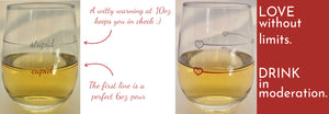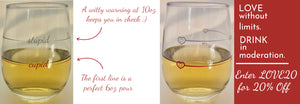 Wine Glassware with Perfect Pour lines. These wine glasses make great Gifts for Women, Gifts for Men, Holiday Gifts, Hostess Gifts, and "Just Because"! Alcohol can sneak up on you...